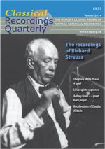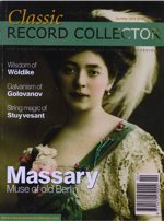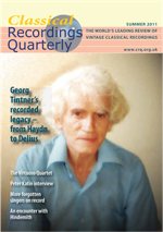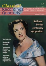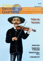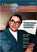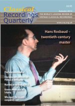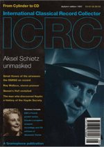 Complete Index of Contents | here | This document contains all the front cover and contents pages for each quarterly issue of this magazine under its three successive titles, from its inception in 1995 to its last issue in 2015 – a total of 80 issues. Thus you can see at a glance details of all the feature articles, reviews and all else that was contained in this unique publication: an extraordinary range of information covering the entire history of the classical recording industry. The material includes portraits of performing artists and their recordings, biographies of other celebrities who contributed to the development of the industry over the course of more than a century, discussions of how technical advances came about, histories of the rise – and sometimes the fall – of great recording companies and famous label series, reviews of landmark recordings in all formats and much else.