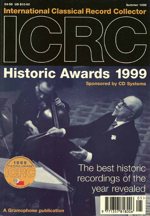 ICRC Historic Awards, 1999 | The shadowy Hermann Abendroth | Günther Ramin, Cantor of Leipzig | Britten the performer | John T. Hughes on rare vocal LPs | Marcel Moyse, the magic flautist | The Discofil label | Peter Bartók and Bartók Records | Letter from America | Far-Eastern Viewpoint | Continental report | New releases | Reviews![]()