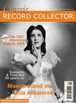 Toscanini, myth and reality | Toscanini and the BBCSO | Licia Albanese recalls Toscanini | Toscanini and Brahms’s First Symphony | CRC Historical Awards 2006 | Julian Bream interview | Profile of Yves Nat | More Decca publicity revelations | The transfer art of Mark Obert-Thorn | Letter from America | Far-Eastern Viewpoint | Continental report | New releases | Reviews![]()